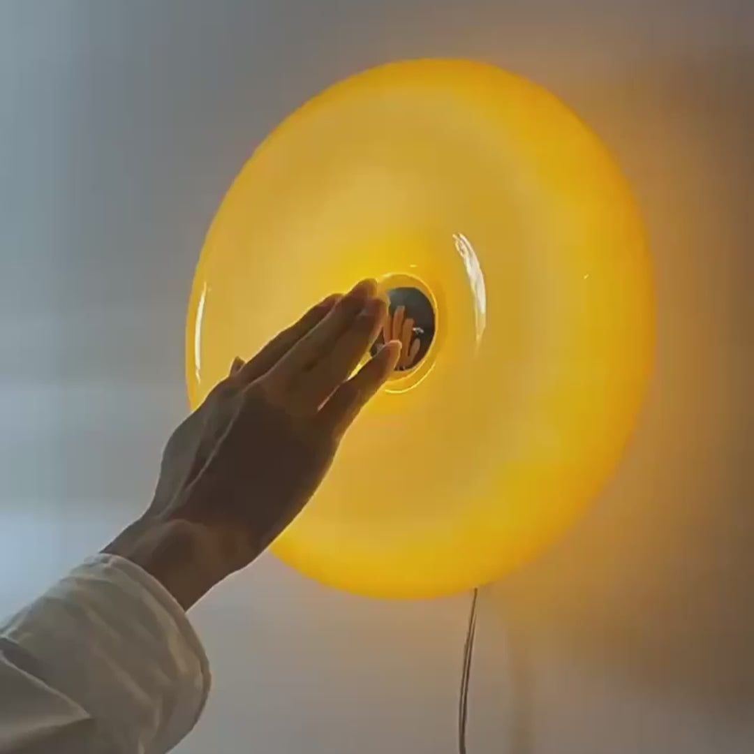 The Varline wall light LED wall lamp 30x30cm combines Scandinavian design with modern functionality and creates a warm and inviting atmosphere. The minimalist donut shape in stylish orange made of high-quality glass makes the light a special highlight in every room. It is ideal for living rooms, bedrooms, hallways or offices and combines aesthetics with practical lighting. The long-lasting LED technology guarantees energy-efficient operation, while the high-quality workmanship ensures an elegant and timeless look.
